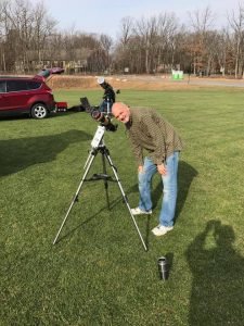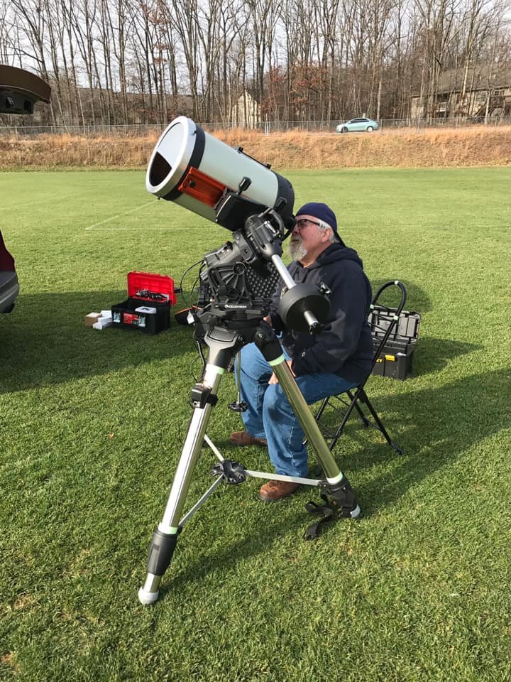 The astronomy club had the opportunity in November 11, 2019 to view the Mercury transit across our closest star which is our sun. We had two scopes onsite at the Hazleton Soccer Fields. According to the weather forecast over the weekend it was supposed to be cloudy well it was a sure surprise on the day of the event. It was clear skies at 7:00 am and there was a rush of panic and getting everything together to look at the Mercury transit. I (Paul) was very much in a panic. What do I do? I grabbed my gear and headed over to the soccer fields to view the event. I was very disorganized I kept messing up my tripod and finally got that all straightened then I put my solar scope on the tripod that was untested for this event. I had issues on pointing on my solar scope at the Sun and I looked at the time and it was 7:28 AM I only had two minutes to spare to view the start of the event. I finally looked through the solar scope and I saw a very small dot on the surface on the sun and I was imagining to see this giant object in front of the Sun but nope it was a little dark dot moving across the Sun. The dark dot of course was our planet Mercury. I reached out to my buddies to meet me on the field to the view the event. Bill Kennedy brought is Celestron 1100 HD telescope with a solar filter and I had my Coronado solar scope. Bill Kennedy had issues too and he forgot his eye pieces and he was very relieved that he had a spare. Dave Berish and Rick Ginanni were onsite viewing the spectacular event and this was our first time to see Mercury crossing the sun. We had discussions all weekend on how crappy the weather was going to be and had to wait to 2032 to see the next Mercury transit. It was by God’s grace that we got to see the event. We all learned lessons about our equipment and about the transit of Mercury. It was all good!